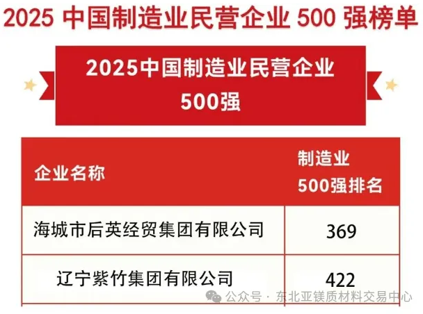 海城市后英經(jīng)貿(mào)集團(tuán)有限公司榮登2025中國制造業(yè)民營企業(yè)500強(qiáng)榜單,并以230.38億元營業(yè)收入名列第369位。