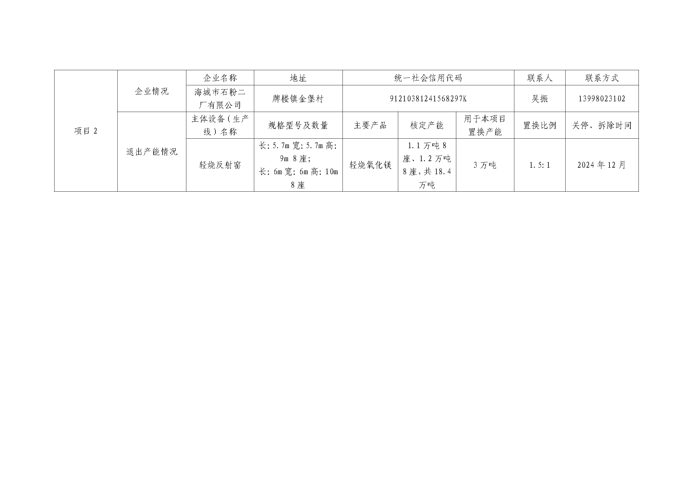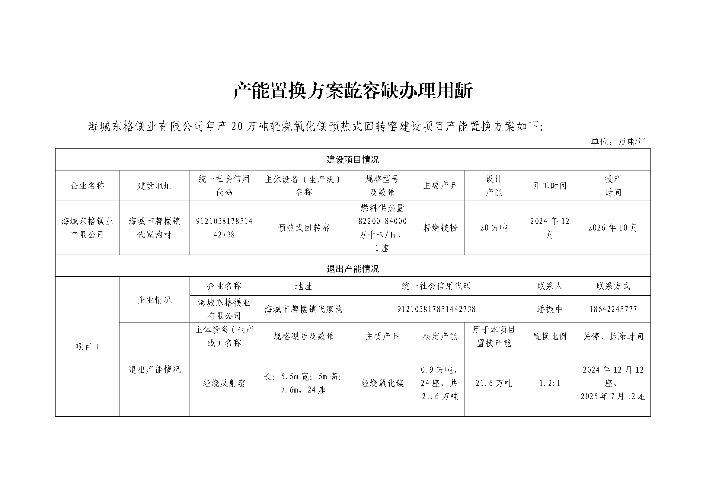 附件:海城東格鎂業(yè)有限公司產(chǎn)能置換方案