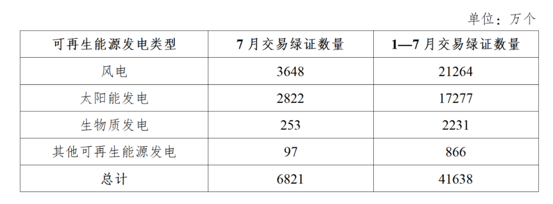2025年7月,全國交易綠證6821萬個,其中綠色電力交易綠證3472萬個。2025年1—7月,全國交易綠證4.16億個,其中綠色電力交易綠證1.41億個。