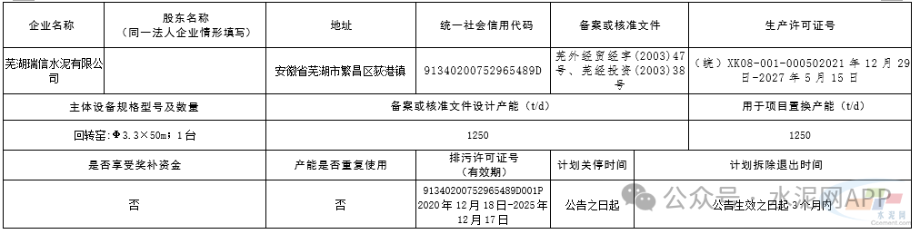 8月29日,安徽省蕪湖市工信局發(fā)布關(guān)于安徽海螺水泥股份有限公司白馬山水泥廠(chǎng)水泥熟料生產(chǎn)線(xiàn)產(chǎn)能置換方案的公示。