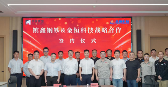 8月28日,金恒科技與江蘇省鑌鑫鋼鐵集團(tuán)有限公司(以下簡稱:鑌鑫鋼鐵)舉行戰(zhàn)略合作簽約儀式。鑌鑫鋼鐵副董事長林滔、總工程師程乃良,金恒科技黨委書記、董事長李福存,副總經(jīng)理江海洋等出席簽字儀式。