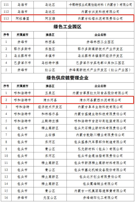 7月9日,內(nèi)蒙古工信廳公示了《2024年自治區(qū)級綠色制造示范單位》。根據(jù)公示名單,烏蘭浩特紅城水泥有限責(zé)任公司、內(nèi)蒙古松塔水泥有限責(zé)任公司入選綠色工廠名單,清水河縣蒙西水泥有限公司入選綠色供應(yīng)鏈管理企...7月9日,內(nèi)蒙古工信廳公示了《2024年自治區(qū)級綠色制造示范單位》。根據(jù)公示名單,烏蘭浩特紅城水泥有限責(zé)任公司、內(nèi)蒙古松塔水泥有限責(zé)任公司入選綠色工廠名單,清水河縣蒙西水泥有限公司入選綠色供應(yīng)鏈管理企業(yè)名單。