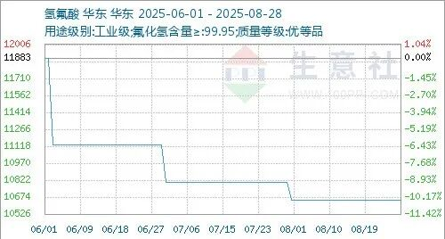 國內(nèi)氫氟酸價(jià)格行情走高,國內(nèi)氫氟酸各地區(qū)商談主流價(jià)格為10200-10800元/噸。下游氫氟酸部分裝置仍處于停車中,氫氟酸現(xiàn)貨供應(yīng)變化不大,廠家氫氟酸按需采購為主,氫氟酸整體開工維持5成多,氟化氫企業(yè)維持剛需訂單,氫氟酸企業(yè)處于虧損狀態(tài),9月份氫氟酸大廠定價(jià)上漲,受此消息影響螢石價(jià)格行情跟漲。