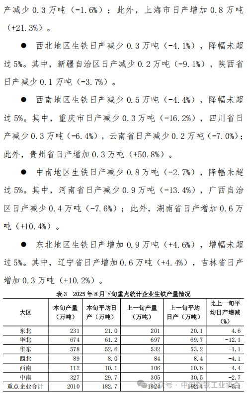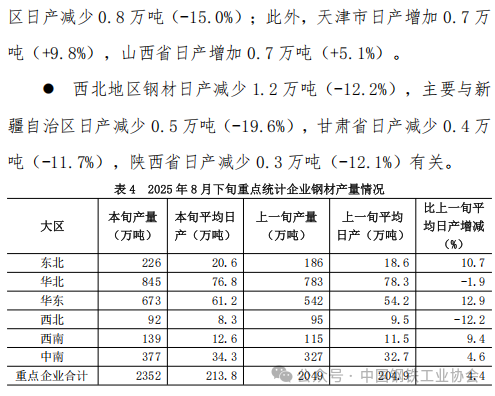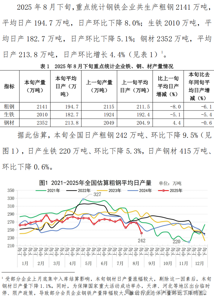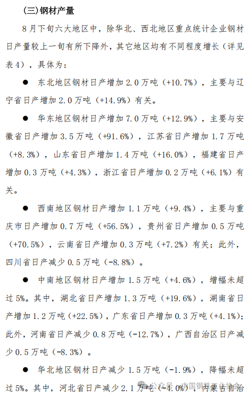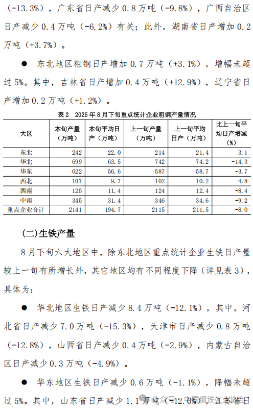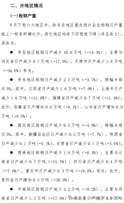 8月下旬重點統(tǒng)計企業(yè)鋼鐵產量旬報