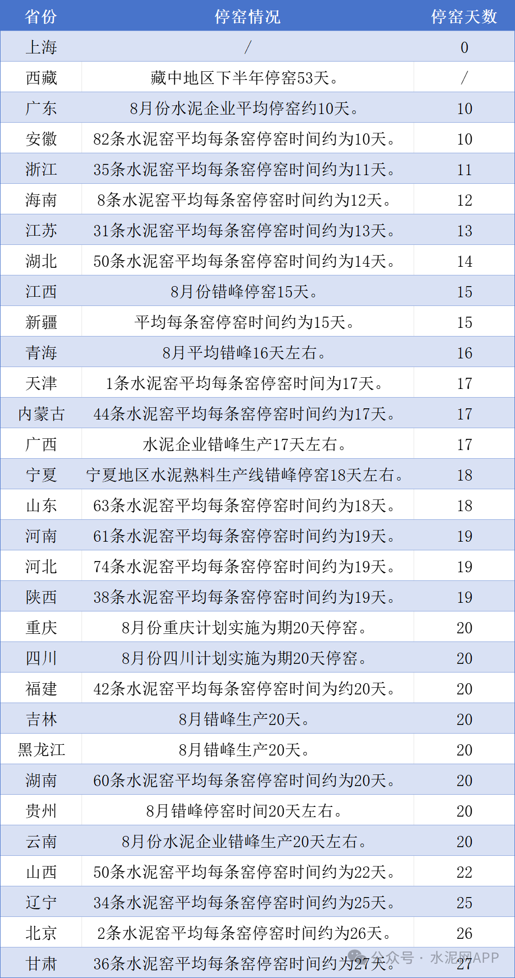 另?yè)?jù)市場(chǎng)反饋,福建地區(qū)水泥企業(yè)計(jì)劃9月錯(cuò)峰停窯18天;河南省水泥企業(yè)8月15號(hào)起停窯20天;湖南9月1日-12月31日錯(cuò)峰生產(chǎn)天數(shù)基數(shù)不少于70天;云南計(jì)劃三季度累計(jì)停窯50天;東北地區(qū)9月繼續(xù)執(zhí)行錯(cuò)峰計(jì)劃,停窯天數(shù)在15天左右...