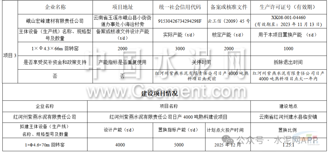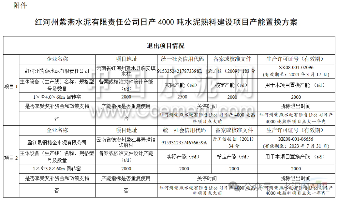 9月11日,云南省工信廳發(fā)布第18號(hào)、第19號(hào)公告。因故未實(shí)施,紅河州紫燕水泥有限責(zé)任公司申請(qǐng)撤銷“紅河州紫燕水泥有限責(zé)任公司日產(chǎn)4000噸水泥熟料建設(shè)項(xiàng)目產(chǎn)能置換方案”。按照原計(jì)劃,該企業(yè)擬建一條4000t/d熟料生產(chǎn)線項(xiàng)目,退出紅河州紫燕水泥有限責(zé)任公司2000t/d、盈江昆鋼榕全水泥有限公司2000t/d、峨山宏峰建材有限責(zé)任公司2000t/d共計(jì)3條生產(chǎn)線。