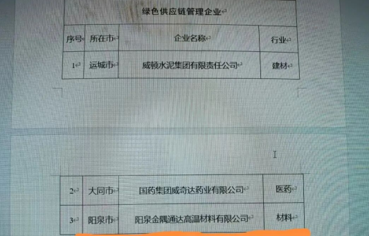 據(jù)山西省工業(yè)和信息化廳官網(wǎng)2025年9月5日公布的“2025年度山西省綠色制造名單”,陽泉金隅通達高溫材料有限公司榮獲“2025年度山西省綠色供應(yīng)鏈管理企業(yè)”,標(biāo)志著該公司綠色供應(yīng)鏈管理邁上新臺階,綠色轉(zhuǎn)型發(fā)展取得新成果,為行業(yè)綠色發(fā)展樹立了新標(biāo)桿。