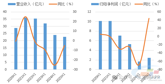 圖1、2:2025年上半年上峰水泥營(yíng)收、利潤(rùn)走勢(shì)