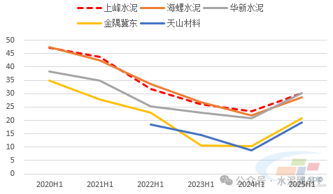 盡管水泥熟料綜合銷(xiāo)量出現(xiàn)下降,但得益于煤炭采購(gòu)價(jià)格下跌和精細(xì)化管理促使可控成本下降,2025年上半年公司水泥熟料綜合毛利率達(dá)到30.1%,較去年同期提升6.7個(gè)百分點(diǎn),絕對(duì)毛利率水平略微低于華新水泥(主要海外帶動(dòng)),超過(guò)國(guó)內(nèi)多數(shù)主要上市公司,在行業(yè)中處于領(lǐng)先地位,水泥產(chǎn)品盈利能力較強(qiáng)。