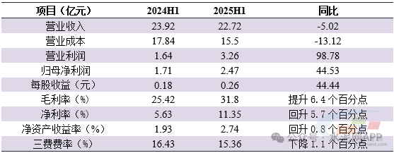 表1:2025年上半年上峰水泥主要財(cái)務(wù)指標(biāo)