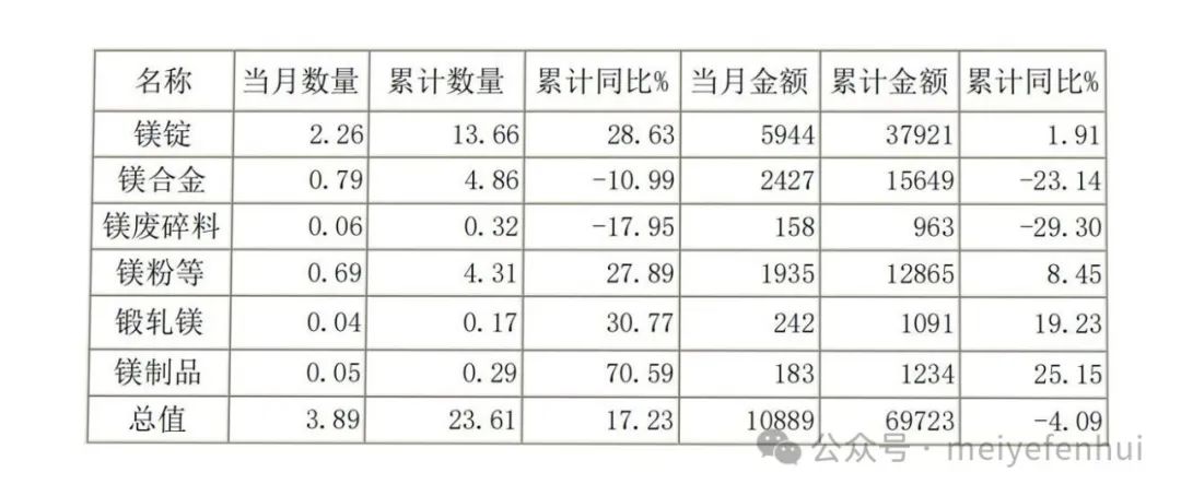 2024年1-6月中國(guó)各類(lèi)鎂產(chǎn)品出口統(tǒng)計(jì)情況 (單位:萬(wàn)噸、萬(wàn)美元)