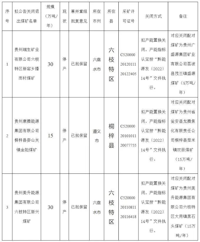 貴州省能源局關(guān)于自愿申請關(guān)閉煤礦的公示