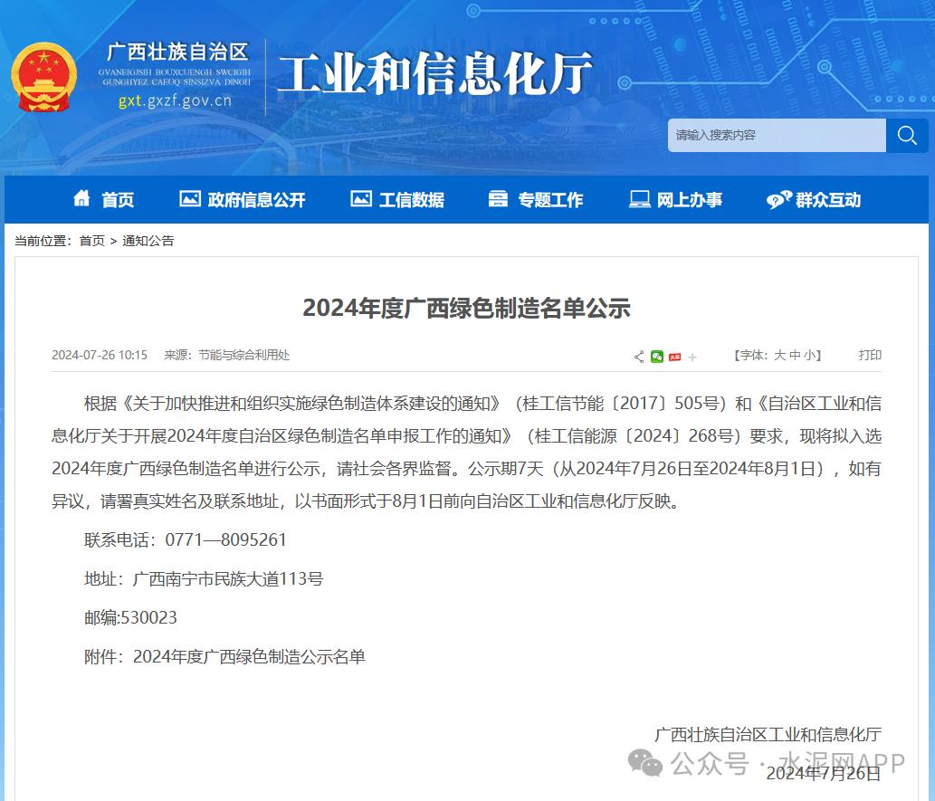 近日,廣西壯族自治區(qū)工業(yè)和信息化廳公示了《2024年度廣西綠色制造名單》。