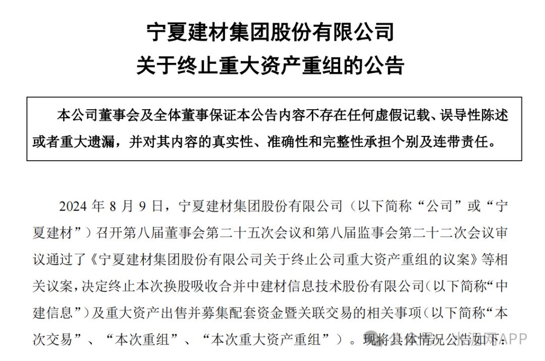 實為“老問題”未解決“當時進行這個重組交易主要就是為了解決我們和天山股份之間存在的同業(yè)競爭問題。目前,交易終止主要原因還是我們吸收合并的中建信息涉及的應(yīng)收賬款問題,經(jīng)過這么長時間,還是沒能梳理清晰?!?月13日下午,寧夏建材方面對記者表示。今年1月底,上交所便發(fā)布了關(guān)于終止寧夏建材吸收合并中建信息及重大資產(chǎn)出售并募集配套資金的審核決定。