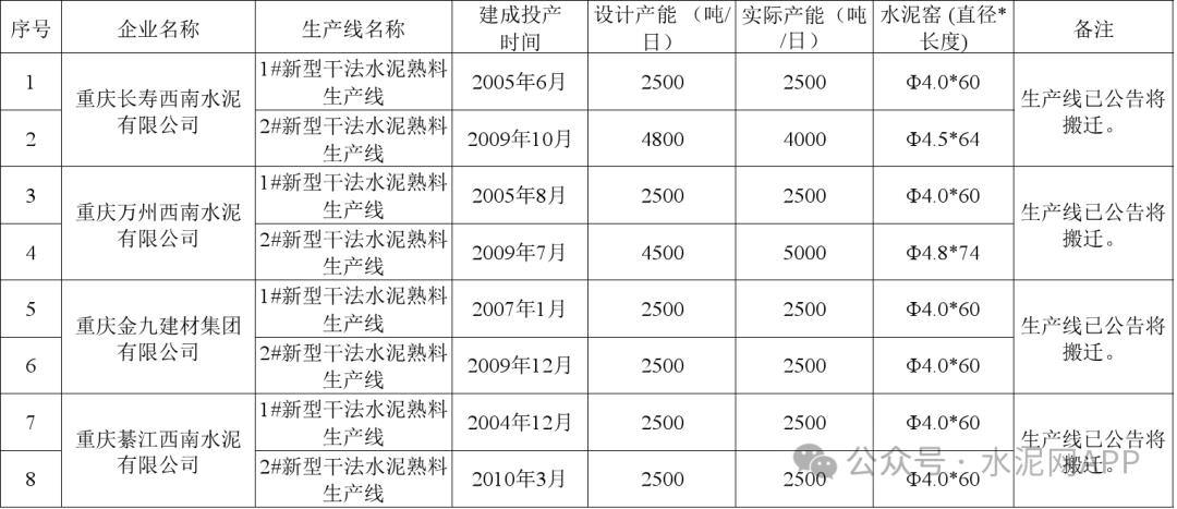 日前,重慶市經(jīng)濟和信息化委員會發(fā)布《關(guān)于重慶市水泥熟料生產(chǎn)線清單更新的公示》,對2023年度(截至2023年12月31日)市內(nèi)所有合規(guī)水泥熟料生產(chǎn)線情況進行了核實。