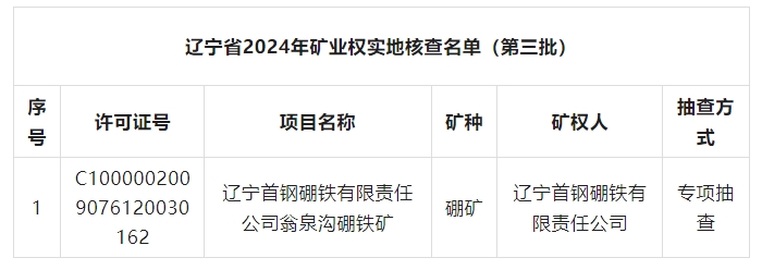 附件:遼寧省2024年礦業(yè)權(quán)實(shí)地核查名單(第三批)