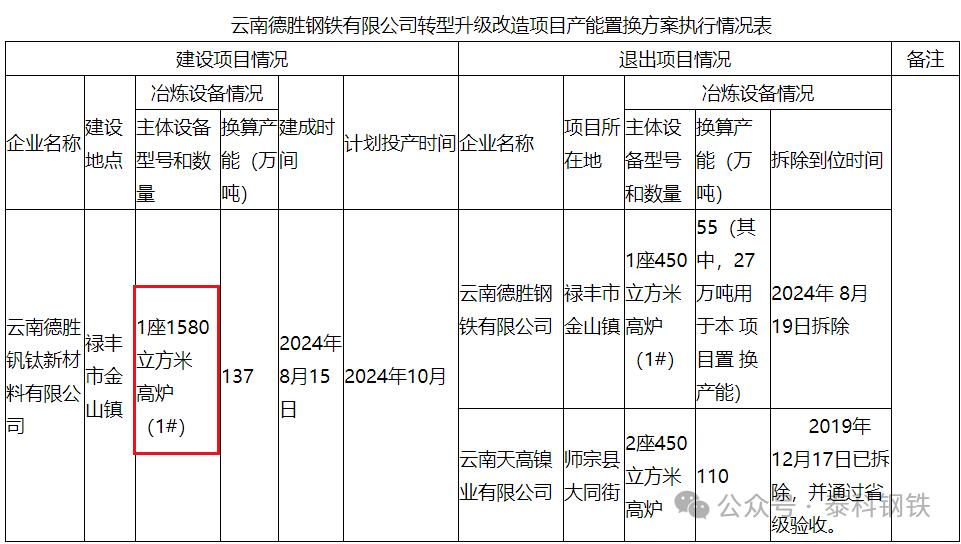 附件:云南德勝鋼鐵有限公司轉(zhuǎn)型升級(jí)改造項(xiàng)目產(chǎn)能置換方案執(zhí)行情況