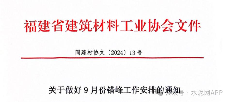 8月29日,福建省建筑材料工業(yè)協(xié)會發(fā)布關(guān)于《做好9月份錯(cuò)峰工作安排的通知》。