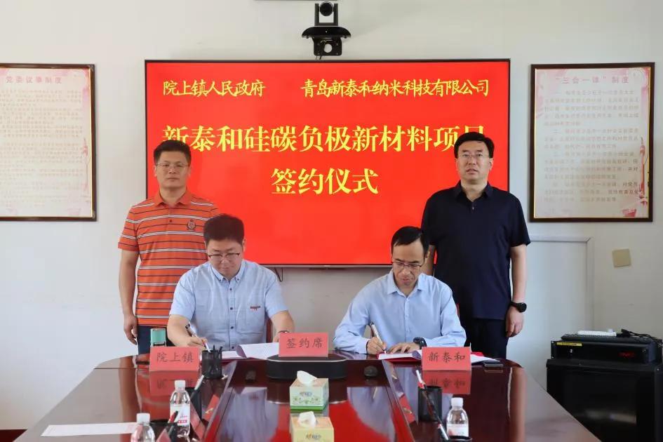 5月22日,院上鎮(zhèn)舉行新泰和硅碳負(fù)極新材料項(xiàng)目簽約儀式。鎮(zhèn)黨委書記于偉、鎮(zhèn)人大主席劉永江、副鎮(zhèn)長劉杰及青島新泰和納米科技有限公司負(fù)責(zé)人蘇紅報(bào)等人出席儀式。