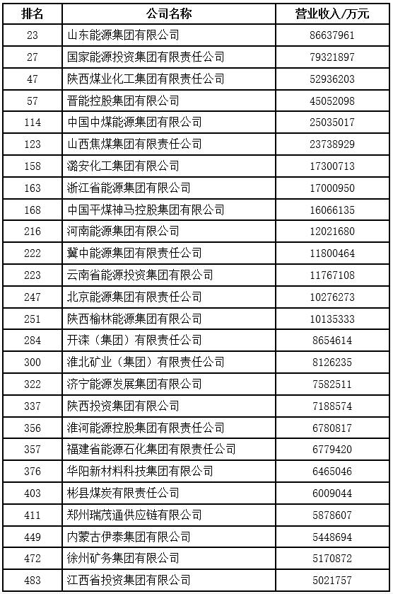 9月11日,在2024中國(guó)500強(qiáng)企業(yè)高峰論壇上,中國(guó)企業(yè)聯(lián)合會(huì)、中國(guó)企業(yè)家協(xié)會(huì)連續(xù)第23次向社會(huì)發(fā)布了“中國(guó)企業(yè)500強(qiáng)”榜單。其中,有26家煤炭企業(yè)上榜,較去年增加4家,具體名單如下: