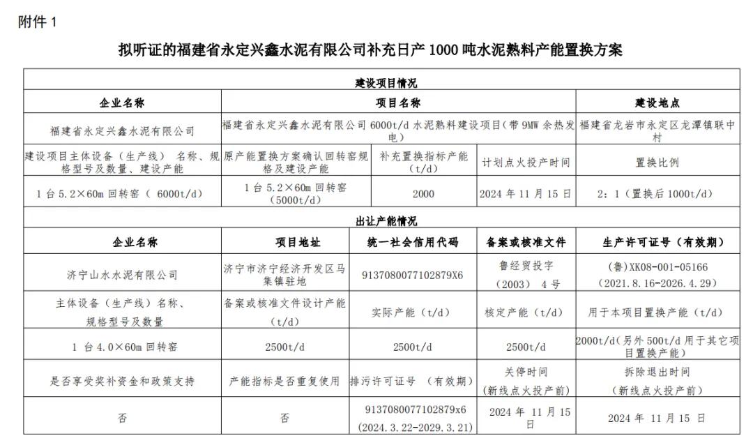 9月13日,福建省工信廳發(fā)布《關(guān)于組織召開福建省永定興鑫水泥有限公司補充日產(chǎn)1000噸水泥熟料產(chǎn)能置換方案聽證會的公告》稱, 為貫徹落實《工業(yè)和信息化部關(guān)于印發(fā)水泥玻璃行業(yè)產(chǎn)能置換實施辦法的通知》(工信部原〔2021〕80號),福建省工業(yè)和信息化廳委托中國水泥協(xié)會,擬組織召開福建省永定興鑫水泥有限公司補充日產(chǎn)1000噸水泥熟料產(chǎn)能置換方案聽證會。
