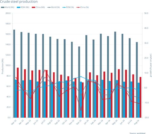 2024年8月全球粗鋼產(chǎn)量