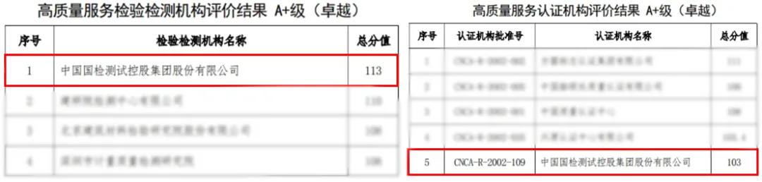 近日,中國(guó)認(rèn)證認(rèn)可協(xié)會(huì)公布深圳檢驗(yàn)檢測(cè)與認(rèn)證結(jié)果采信試點(diǎn)工作中首批高質(zhì)量服務(wù)檢驗(yàn)檢測(cè)認(rèn)證機(jī)構(gòu)評(píng)價(jià)結(jié)果。國(guó)檢集團(tuán)在檢驗(yàn)檢測(cè)機(jī)構(gòu)和認(rèn)證機(jī)構(gòu)兩類(lèi)榜單中均喜獲最高A+級(jí)(卓越)。