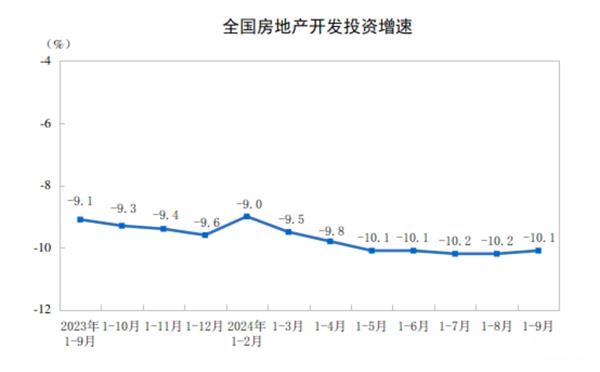 2024年前三季度,全國房地產(chǎn)開發(fā)投資78680億元,同比下降10.1%(按可比口徑計(jì)算);其中,住宅投資59701億元,下降10.5%。