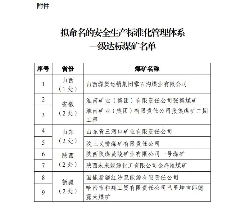 附件:擬命名的安全生產(chǎn)標(biāo)準(zhǔn)化管理體系一級達標(biāo)煤名單