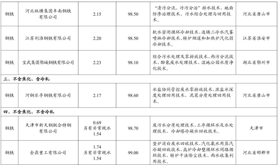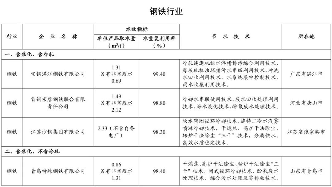 按照《工業(yè)和信息化部辦公廳 水利部辦公廳 國家發(fā)展改革委辦公廳 市場監(jiān)管總局辦公廳關(guān)于組織開展2024年重點用水企業(yè)、園區(qū)水效領(lǐng)跑者遴選工作的通知》(工信廳聯(lián)節(jié)函〔2024〕225號)要求,經(jīng)企業(yè)和園區(qū)申報、地方推薦、專家評審,確定了2024年重點用水企業(yè)、園區(qū)水效領(lǐng)跑者名單。其中,13家鋼鐵企業(yè)入選: