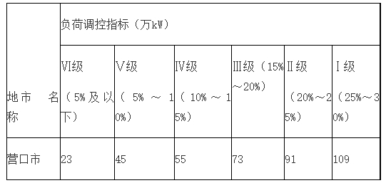 為保證電網(wǎng)安全穩(wěn)定運行、經(jīng)濟社會健康發(fā)展,以營口地區(qū)最大負荷缺口分別為Ⅵ級:23萬千瓦、Ⅴ級:45萬千瓦、Ⅳ級: