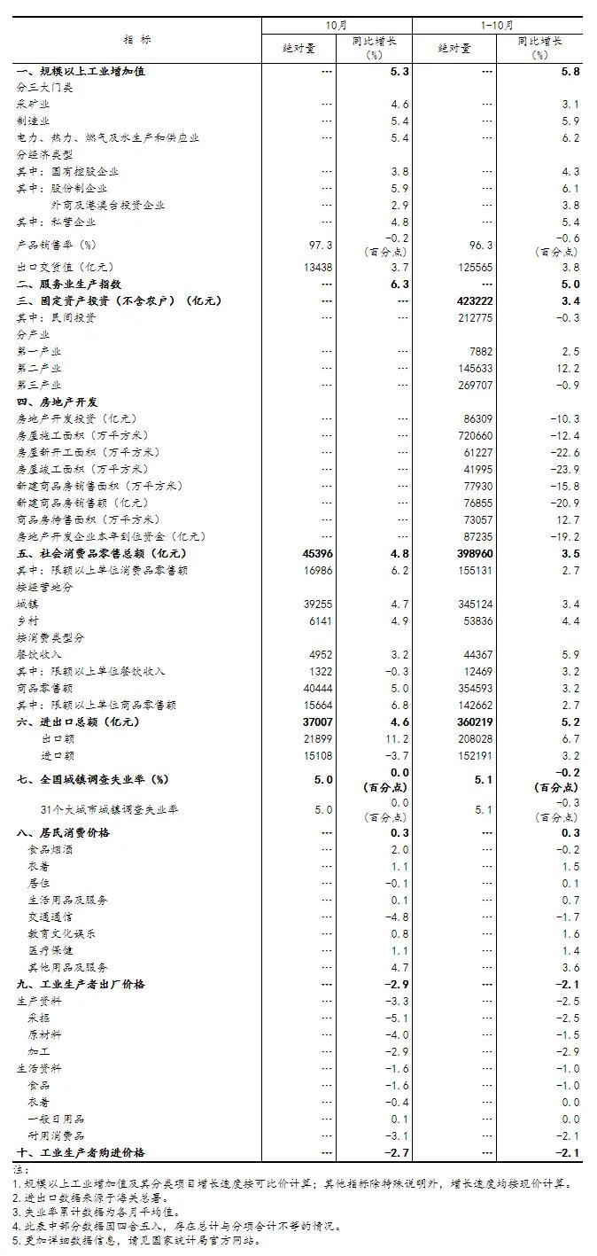 10月份國民經(jīng)濟(jì)運(yùn)行穩(wěn)中有進(jìn) 主要經(jīng)濟(jì)指標(biāo)回升明顯
