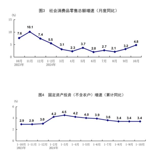 總的來看,10月份隨著存量政策加快落實(shí)以及一攬子增量政策加力推出,國民經(jīng)濟(jì)運(yùn)行穩(wěn)中有進(jìn),主要指標(biāo)明顯回升,積極因素累積增多。但也要看到,外部環(huán)境更趨復(fù)雜嚴(yán)峻,國內(nèi)有效需求偏弱,經(jīng)濟(jì)持續(xù)回升基礎(chǔ)仍待鞏固。下階段,要堅(jiān)持以習(xí)近平新時(shí)代中國特色社會主義思想為指導(dǎo),全面貫徹落實(shí)黨的二十大和二十屆二中、三中全會精神,堅(jiān)持穩(wěn)中求進(jìn)工作總基調(diào),完整、準(zhǔn)確、全面貫徹新發(fā)展理念,扎實(shí)推進(jìn)高質(zhì)量發(fā)展,加快構(gòu)建新發(fā)展格局,加力推進(jìn)一攬子增量政策落地落實(shí),鞏固和增強(qiáng)經(jīng)濟(jì)回升向好態(tài)勢,努力完成全年經(jīng)濟(jì)社會發(fā)展目標(biāo)任務(wù)。