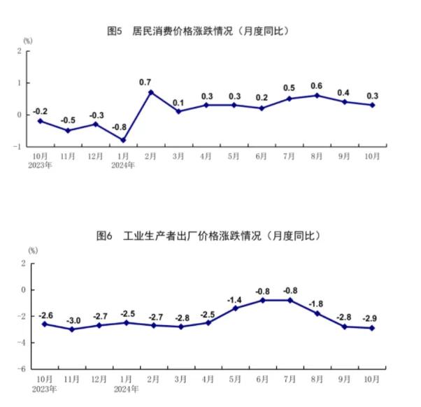 10月份,全國工業(yè)生產(chǎn)者出廠價(jià)格同比下降2.9%,環(huán)比下降0.1%;全國工業(yè)生產(chǎn)者購進(jìn)價(jià)格同比下降2.7%,環(huán)比下降0.3%。1-10月份,全國工業(yè)生產(chǎn)者出廠價(jià)格和購進(jìn)價(jià)格均比上年同期下降2.1%。