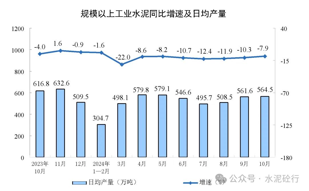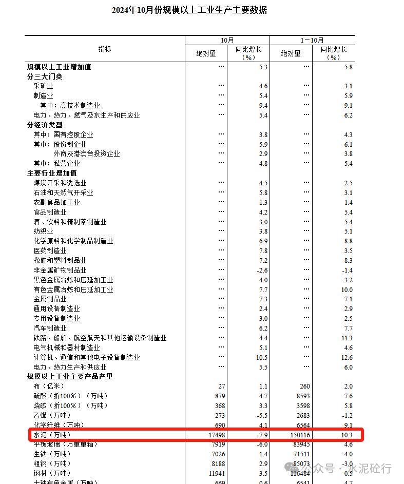 11月15日,國(guó)家統(tǒng)計(jì)局公布了10月份國(guó)民經(jīng)濟(jì)數(shù)據(jù)。10月份,規(guī)模以上工業(yè)增加值同比實(shí)際增長(zhǎng)5.3%(增加值增速均為扣除價(jià)格因素的實(shí)際增長(zhǎng)率)。從環(huán)比看,10月份,規(guī)模以上工業(yè)增加值比上月增長(zhǎng)0.41%。1—10月份,規(guī)模以上工業(yè)增加值同比增長(zhǎng)5.8%。其中,10月份水泥產(chǎn)量17498萬(wàn)噸,同比下降7.9%;1-10月水泥產(chǎn)量150116萬(wàn)噸,同比下降10.3%。此外,數(shù)據(jù)顯示,2023年1-10月全國(guó)水泥產(chǎn)量168585萬(wàn)噸,由此計(jì)算,今年1-10月水泥全口徑產(chǎn)量比去年同期減少18469萬(wàn)噸,降幅10.96%。