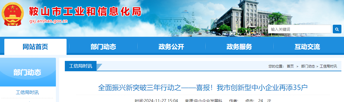 近日,遼寧省工業(yè)和信息化廳官方網(wǎng)站發(fā)布遼寧省創(chuàng)新型中小企業(yè)名單(2024年第三批),鞍山市35戶企業(yè)獲此殊榮。獲評(píng)企業(yè)中,滿分企業(yè)1戶,80分以上企業(yè)12戶,高新技術(shù)企業(yè)31戶,擁有省部級(jí)以上研發(fā)機(jī)構(gòu)的企業(yè)2戶,知識(shí)產(chǎn)權(quán)優(yōu)勢(shì)企業(yè)1戶。截至目前,全市已有創(chuàng)新型中小企業(yè)216戶,標(biāo)志著鞍山市優(yōu)質(zhì)中小企業(yè)梯度培育工作初見成效。