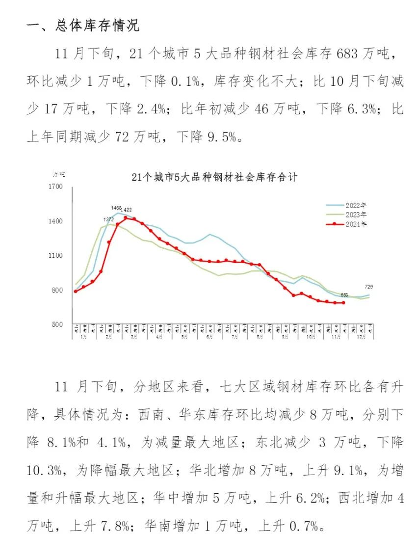11月下旬鋼材社會(huì)庫(kù)存監(jiān)測(cè)旬報(bào)