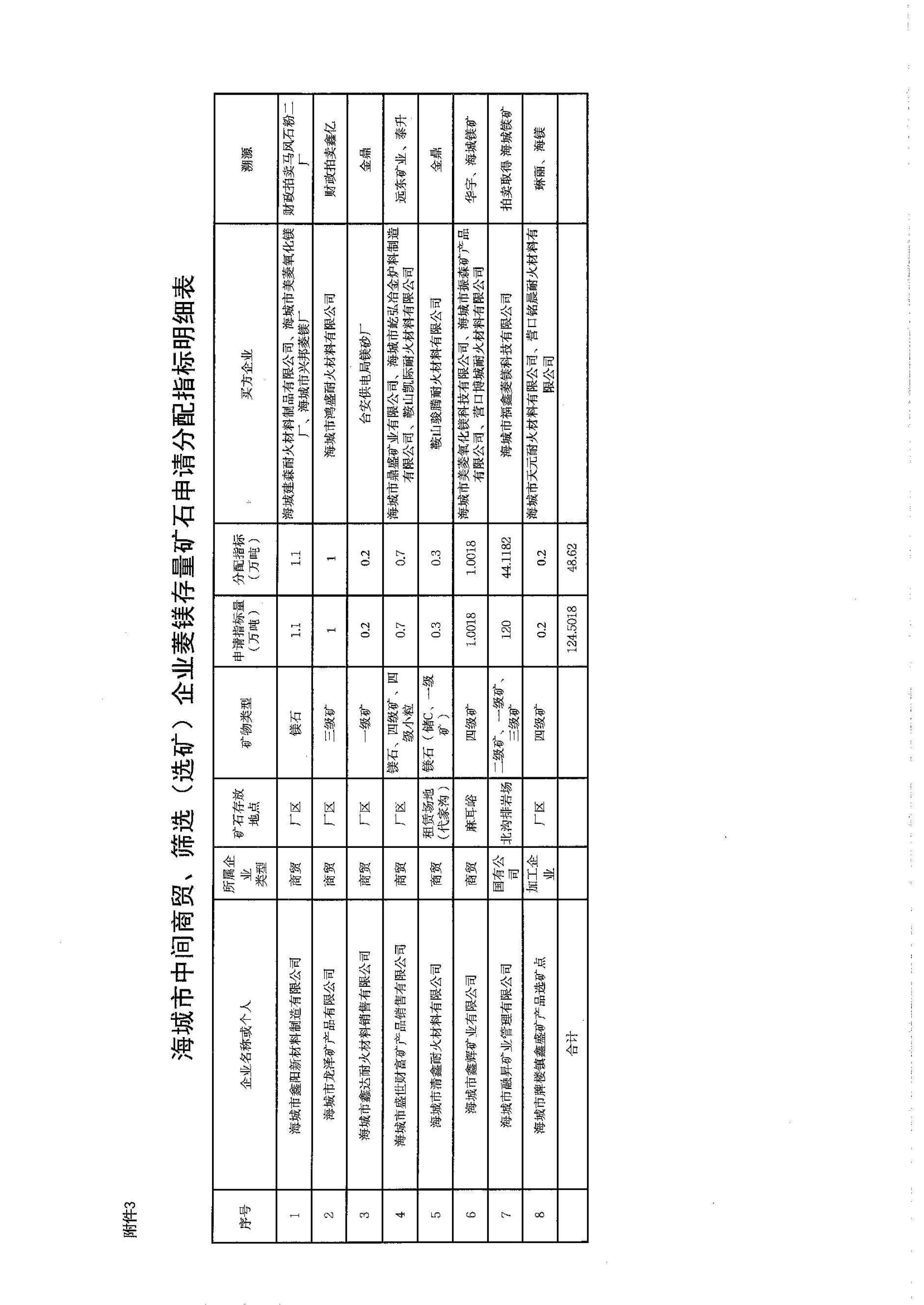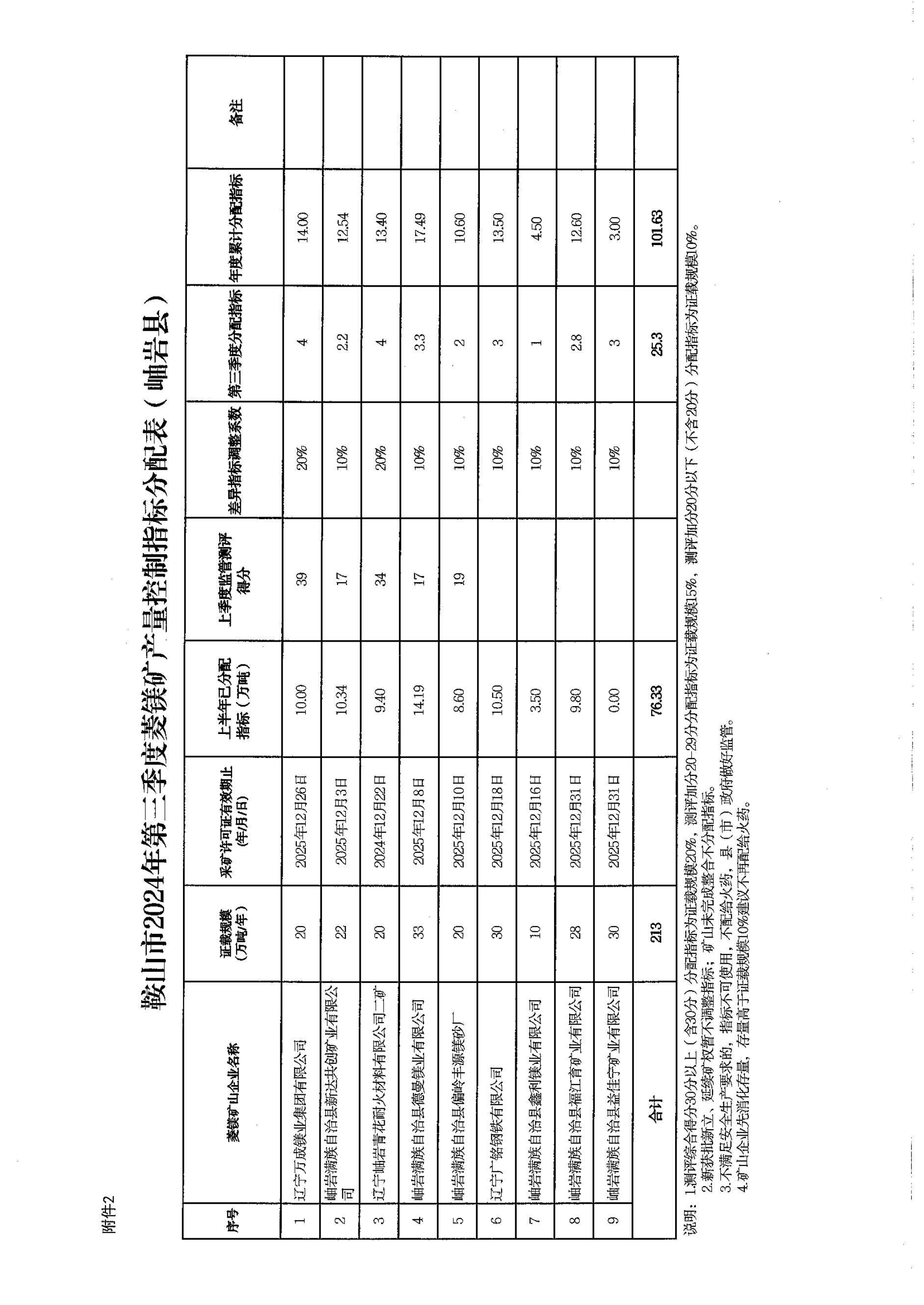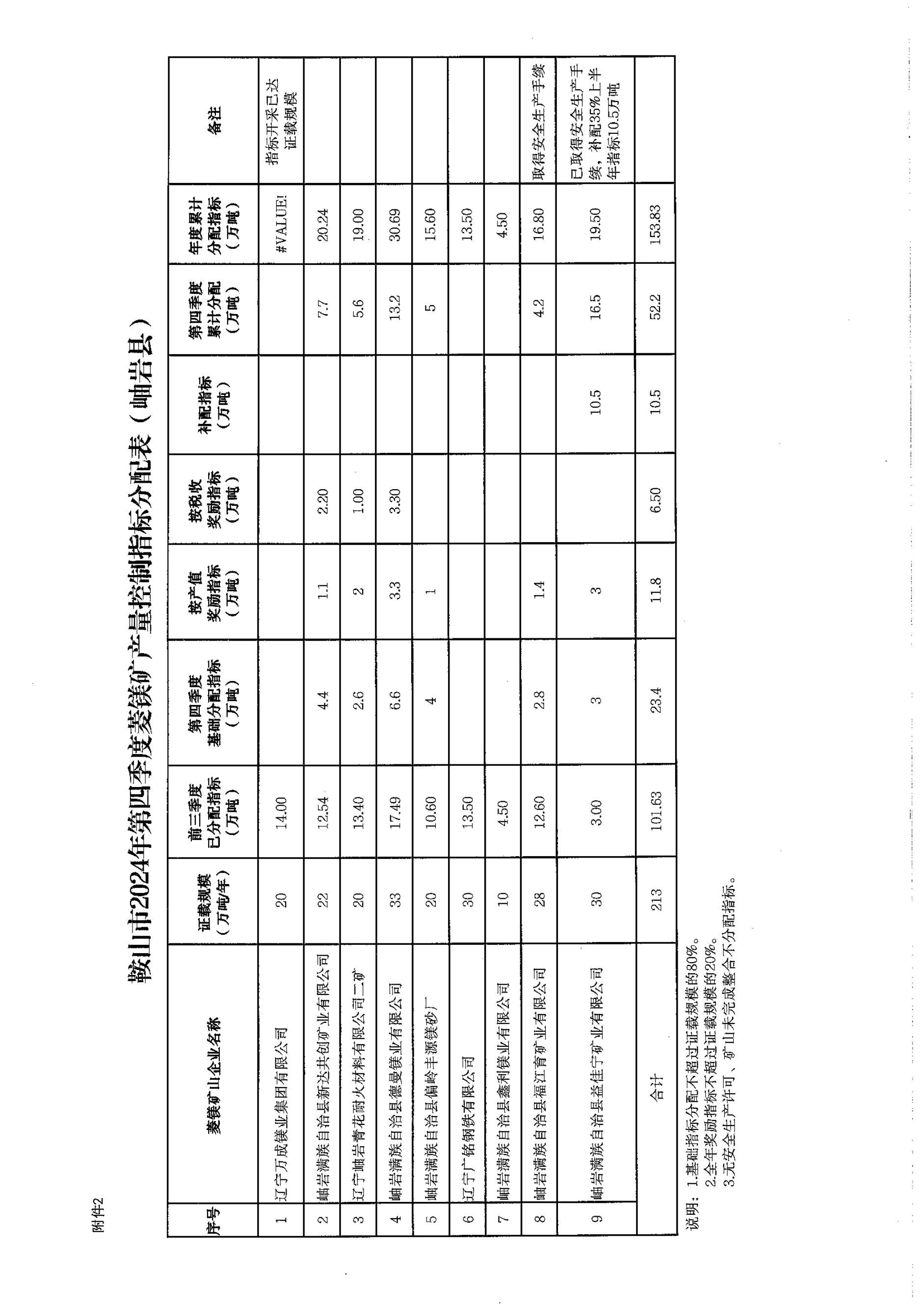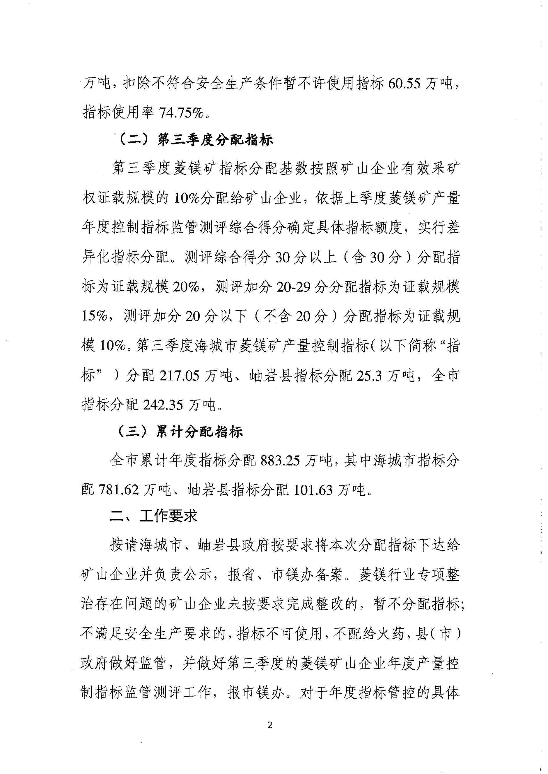 關(guān)于鞍山市2024年第三,第四季度菱鎂礦產(chǎn)量控制指標(biāo)分配的通知