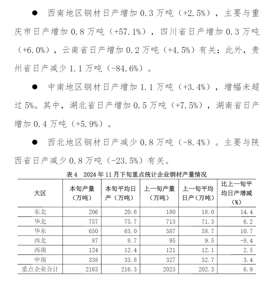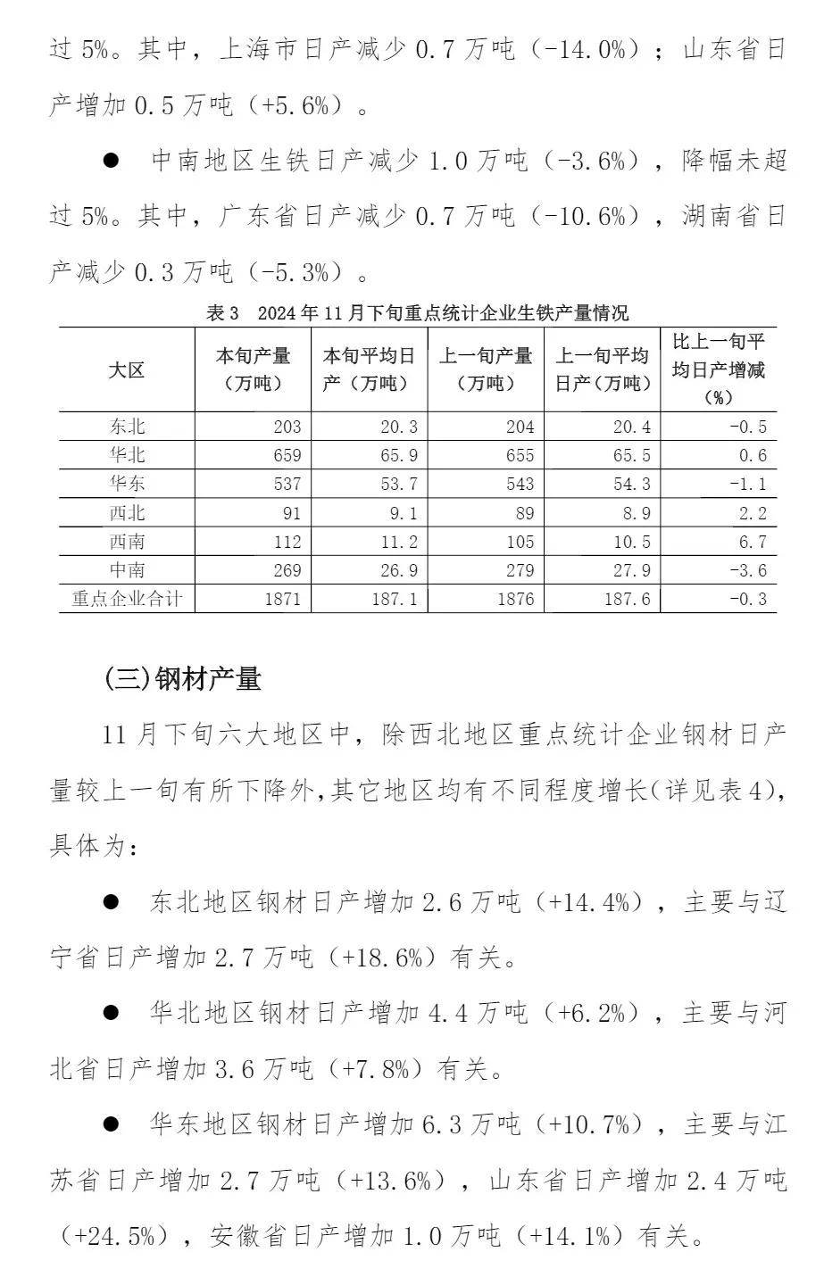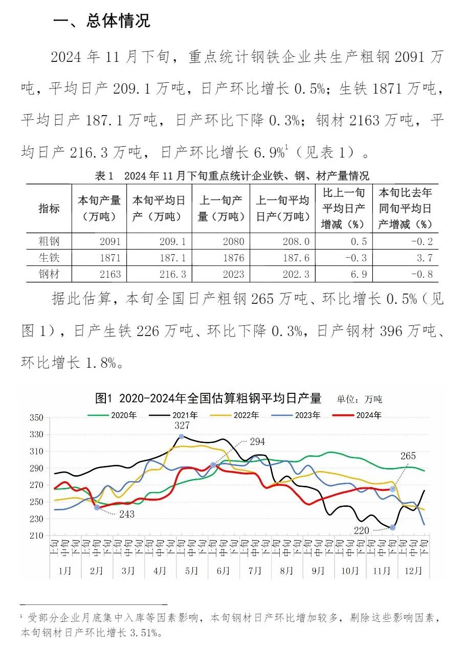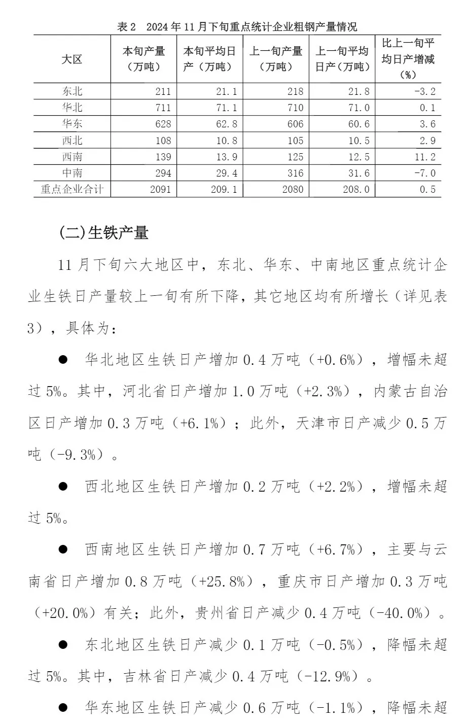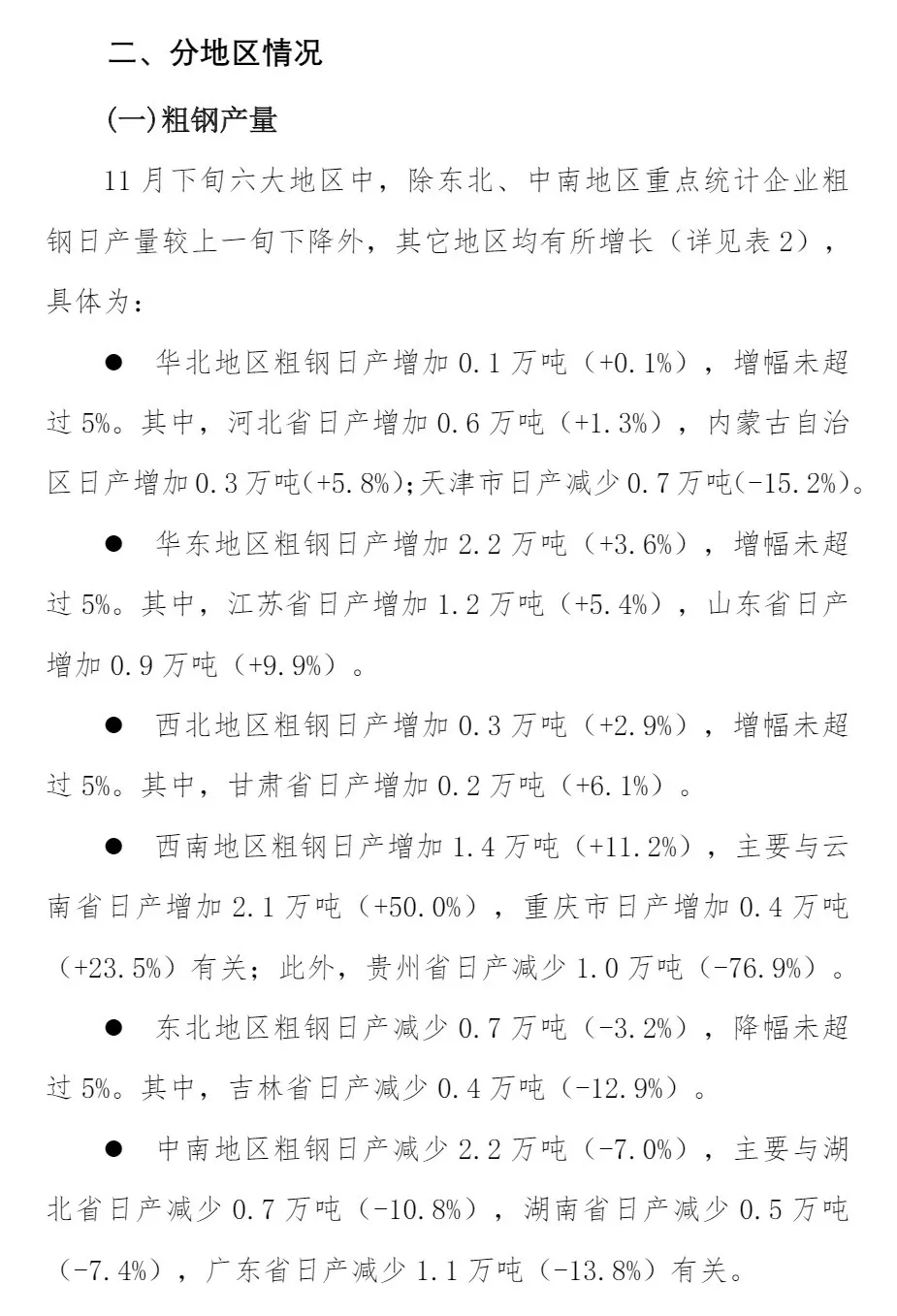 11月下旬重點(diǎn)企業(yè)鋼鐵產(chǎn)量旬報(bào)?