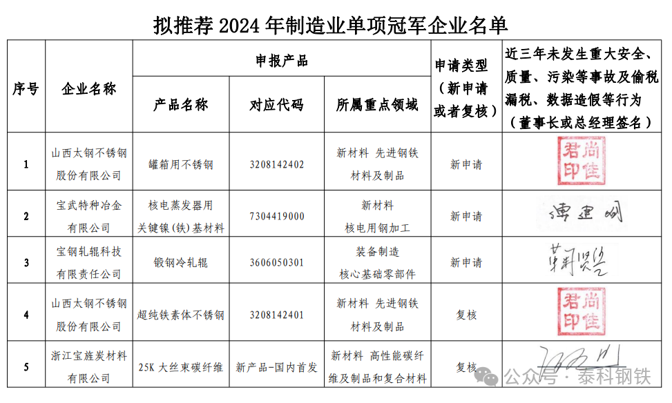根據(jù)《工業(yè)和信息化部辦公廳關(guān)于開(kāi)展2024年制造業(yè)單項(xiàng)冠軍企業(yè)遴選認(rèn)定和復(fù)核評(píng)價(jià)工作的通知》(工信廳政法函〔2024〕328號(hào)),經(jīng)嚴(yán)格遴選,我部于2024年10月21日至2024年10月23日對(duì)2024年制造業(yè)單項(xiàng)冠軍企業(yè)擬推薦名單進(jìn)行了公示。按照《工業(yè)和信息化部產(chǎn)業(yè)政策與法規(guī)司關(guān)于規(guī)范擬推薦單項(xiàng)冠軍企業(yè)公示的函》(工政法函〔2024〕97號(hào))要求,為健全事前事中事后全周期管理機(jī)制,壓實(shí)企業(yè)生產(chǎn)經(jīng)營(yíng)者責(zé)任,強(qiáng)化事前社會(huì)監(jiān)督,現(xiàn)對(duì)2024年制造業(yè)單項(xiàng)冠軍企業(yè)擬推薦名單進(jìn)行再次公示(詳見(jiàn)附件)。