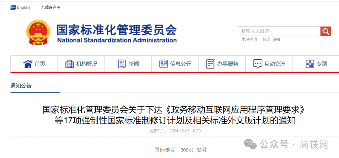 12月1日,國(guó)家標(biāo)準(zhǔn)化管理委員會(huì)關(guān)于下達(dá)17項(xiàng)強(qiáng)制性國(guó)家標(biāo)準(zhǔn)制修訂計(jì)劃及相關(guān)標(biāo)準(zhǔn)外文版計(jì)劃的通知,請(qǐng)有關(guān)部門(mén)做好標(biāo)準(zhǔn)的組織起草、征求意見(jiàn)和技術(shù)審查工作。在標(biāo)準(zhǔn)制修訂過(guò)程中,請(qǐng)加強(qiáng)與有關(guān)方面的協(xié)調(diào),廣泛聽(tīng)取意見(jiàn),保證標(biāo)準(zhǔn)質(zhì)量和水平,嚴(yán)格控制制修訂周期,按時(shí)完成標(biāo)準(zhǔn)制修訂任務(wù)。
