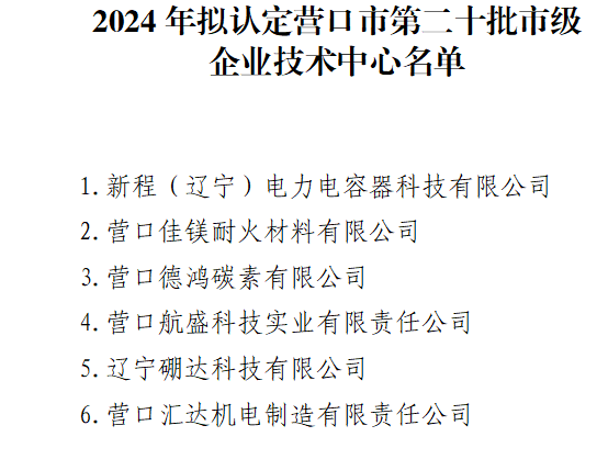 附件:2024年擬認(rèn)定營(yíng)口市第二十批市級(jí)企業(yè)技術(shù)中心名單