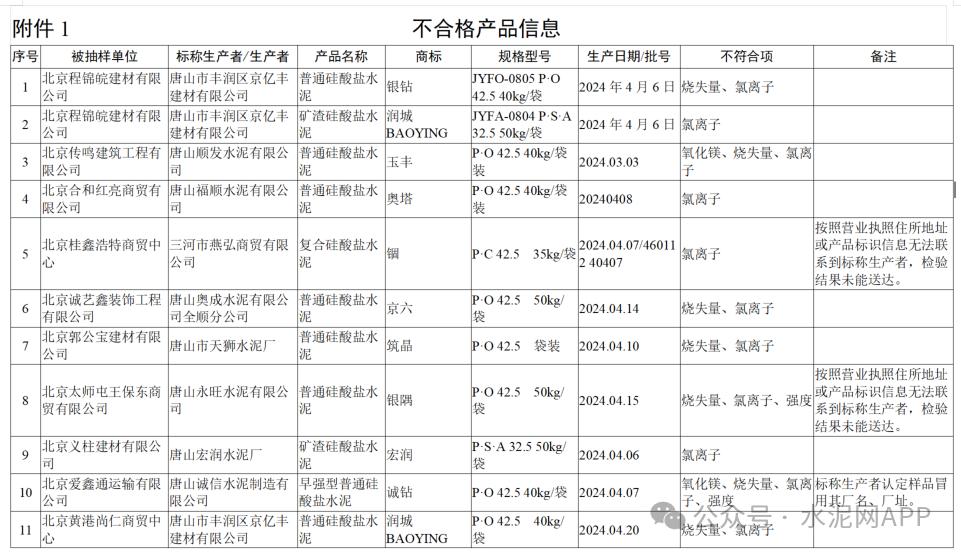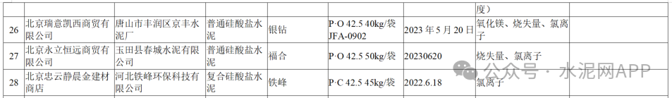 其中檢出28批次水泥產(chǎn)品質(zhì)量不合格,主要質(zhì)量問題是水泥的燒失量、氯離子項(xiàng)目。
