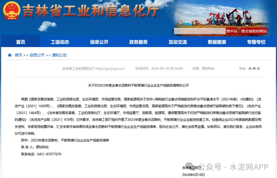 6月18日,吉林省工信廳發(fā)布2023年度全省水泥熟料企業(yè)生產線能效情況。