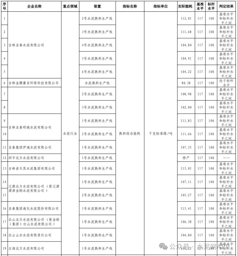 其他17家水泥企業(yè)熟料綜合能耗均在基準水平和標桿水平之間。