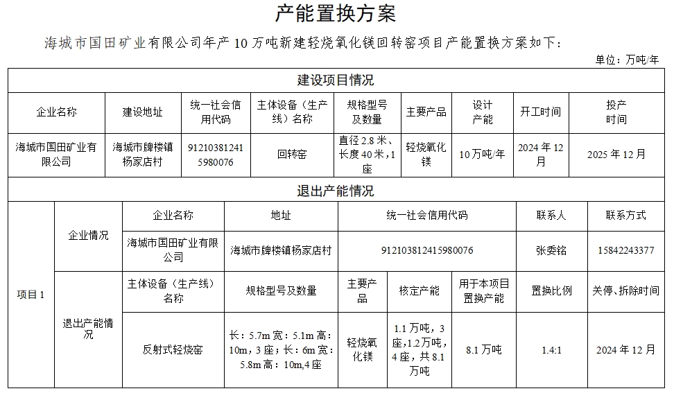 附件1.海城市國田礦業(yè)有限公司產(chǎn)能置換方案