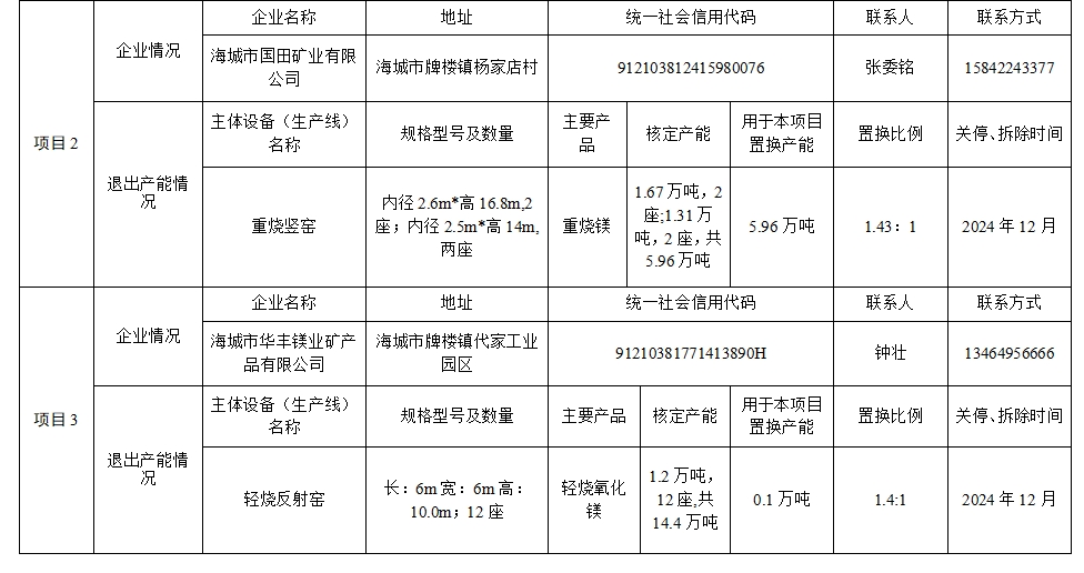 按照《遼寧省人民政府辦公廳關(guān)于推進(jìn)菱鎂行業(yè)高質(zhì)量發(fā)展的實(shí)施意見》(遼政辦發(fā)〔2023〕15號)、《遼寧省菱鎂礦浮選及鎂砂行業(yè)產(chǎn)能置換辦法》(遼工信建材〔2024〕18號)要求,根據(jù)菱鎂行業(yè)專項整治工作進(jìn)展,經(jīng)企業(yè)申請、市工信部門初審、我廳審核,現(xiàn)將海城市國田礦業(yè)有限公司等8戶企業(yè)新建輕燒氧化鎂項目產(chǎn)能置換方案予以公示,公示期10個工作日。