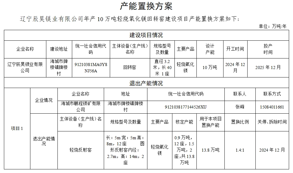 附件2.海城市辰昊鎂業(yè)有限公司產(chǎn)能置換方案