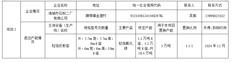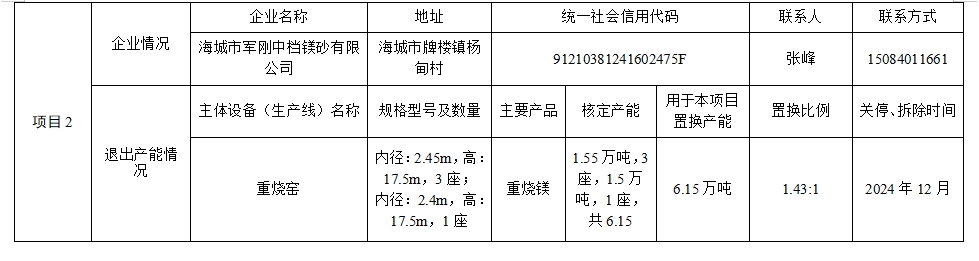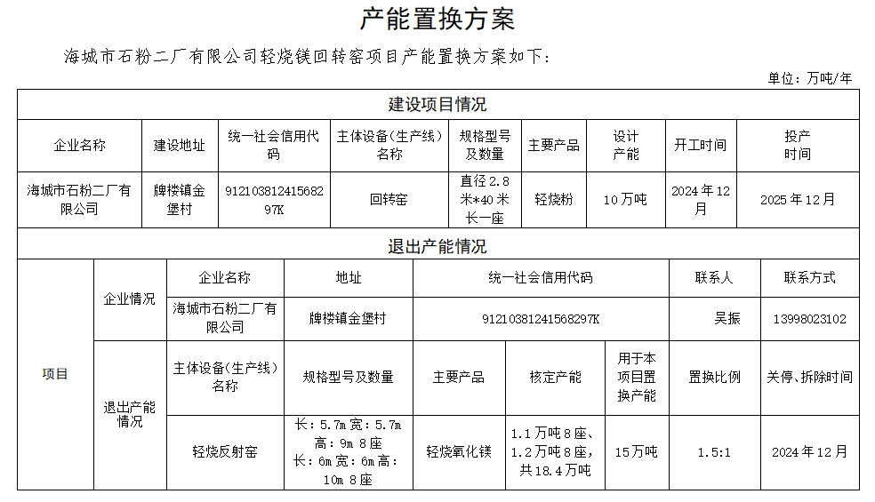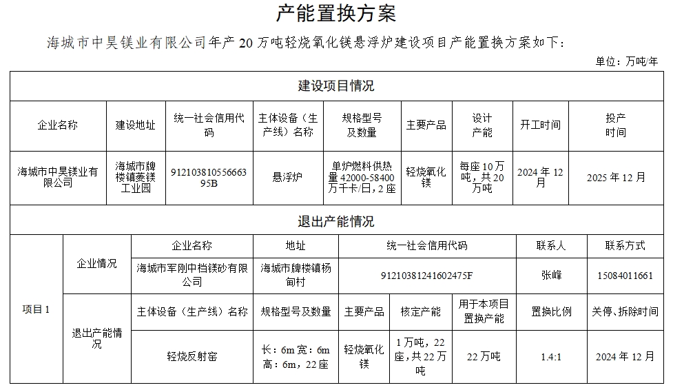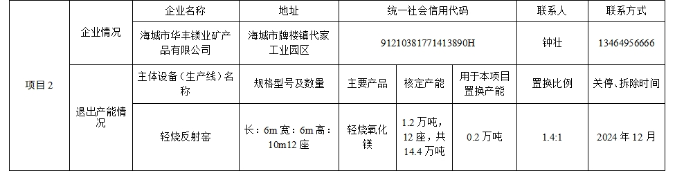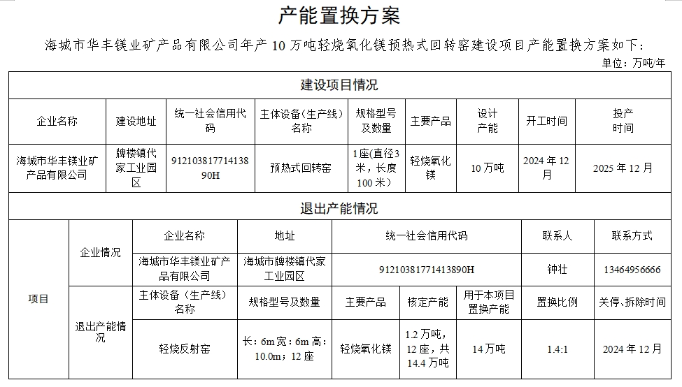 附件5.海城市華豐鎂業(yè)礦產(chǎn)品有限公司產(chǎn)能置換方案