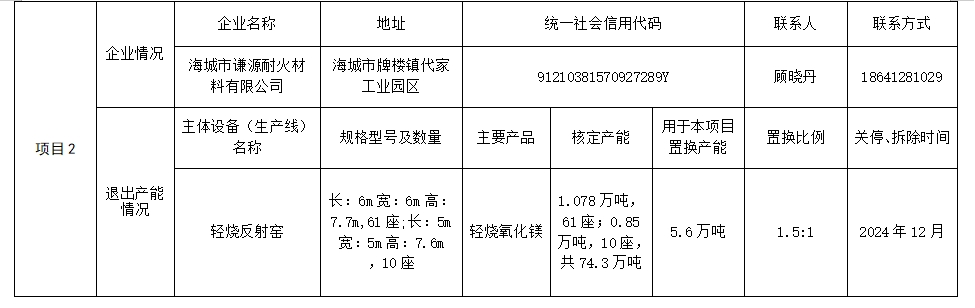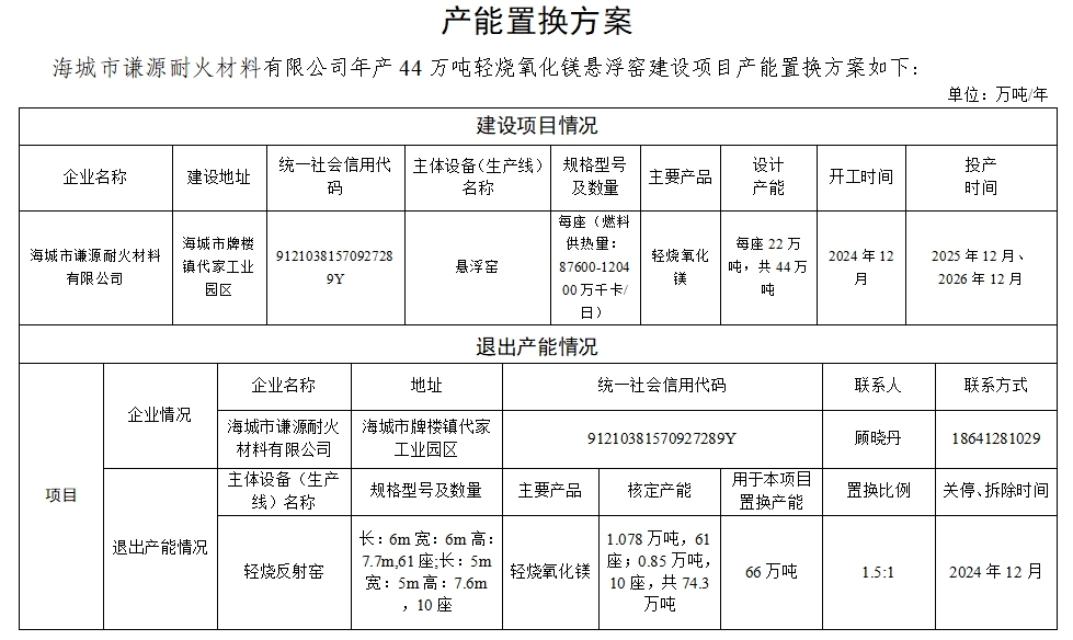 附件4.海城市謙源耐火材料有限公司產(chǎn)能置換方案
